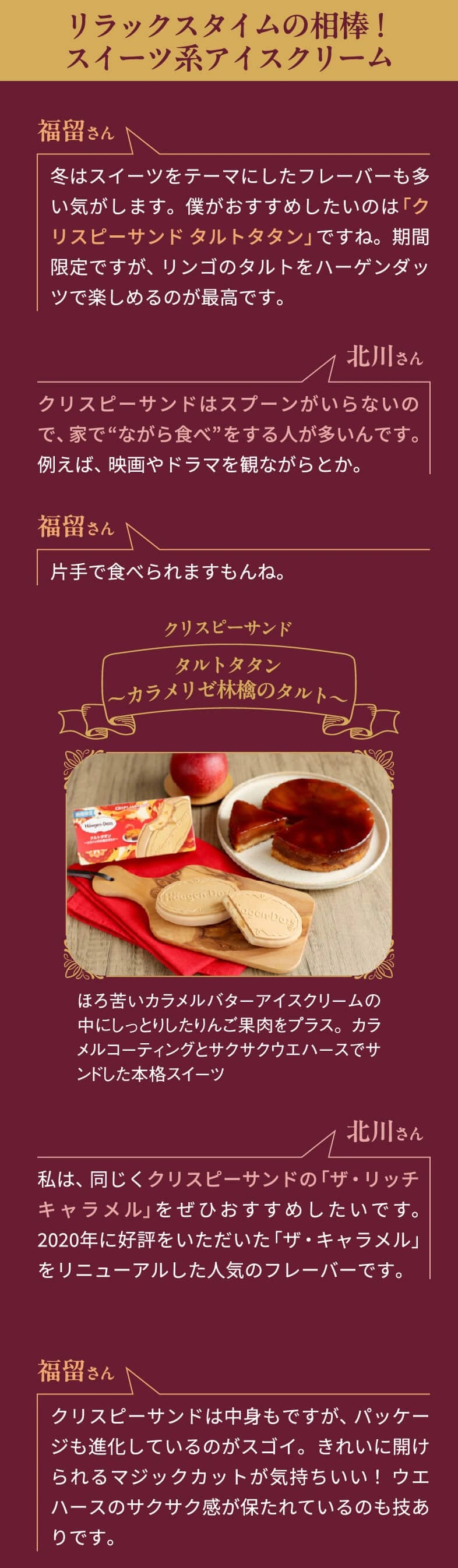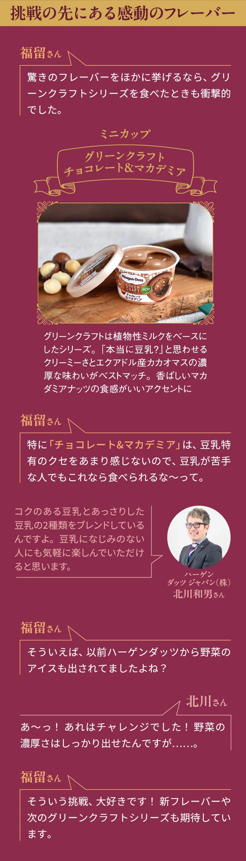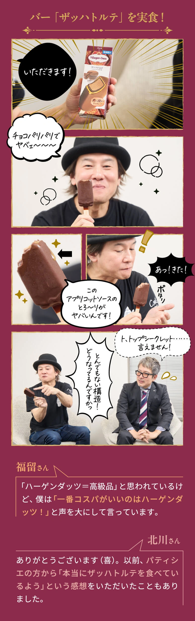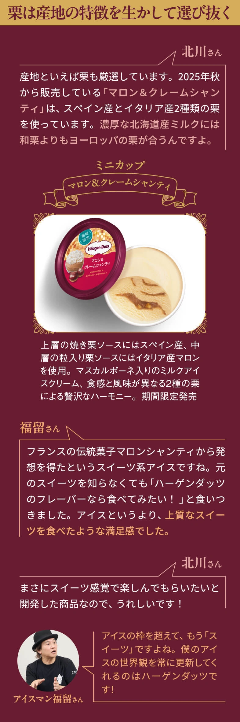 プレミアムアイスのパイオニアとして、40年以上にわたり愛され続けるハーゲンダッツ。そのリッチな味わいはまさに至福のご褒美です。そんなハーゲンダッツのヒミツに迫るべく、日本中のアイスを食べ尽くした専門家・アイスマン福留さんとハーゲンダッツの開発責任者である北川さんによるスペシャル対談が実現!食べるプロと作るプロだからこそ語れる!「おいしさの裏側」とは?