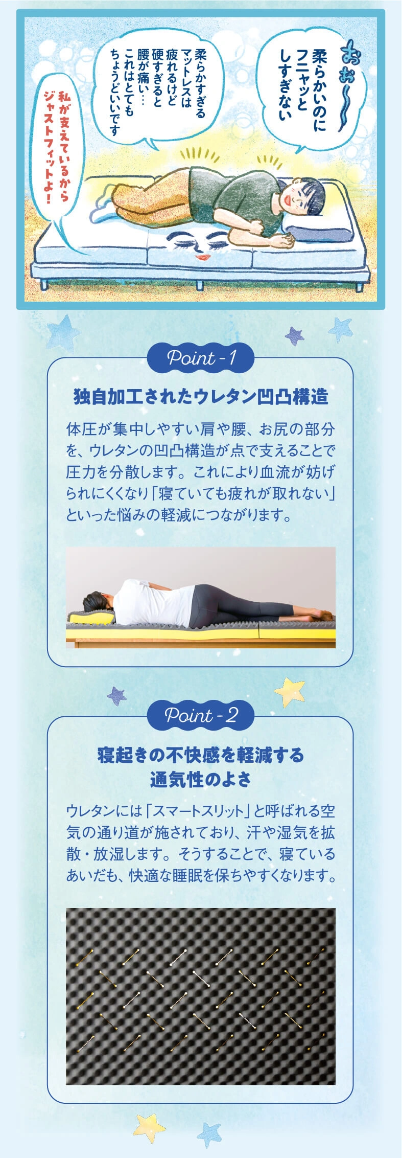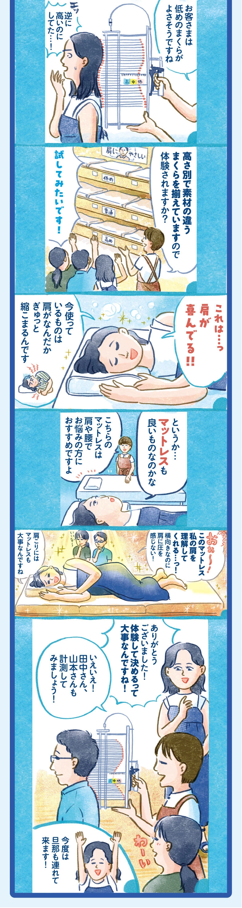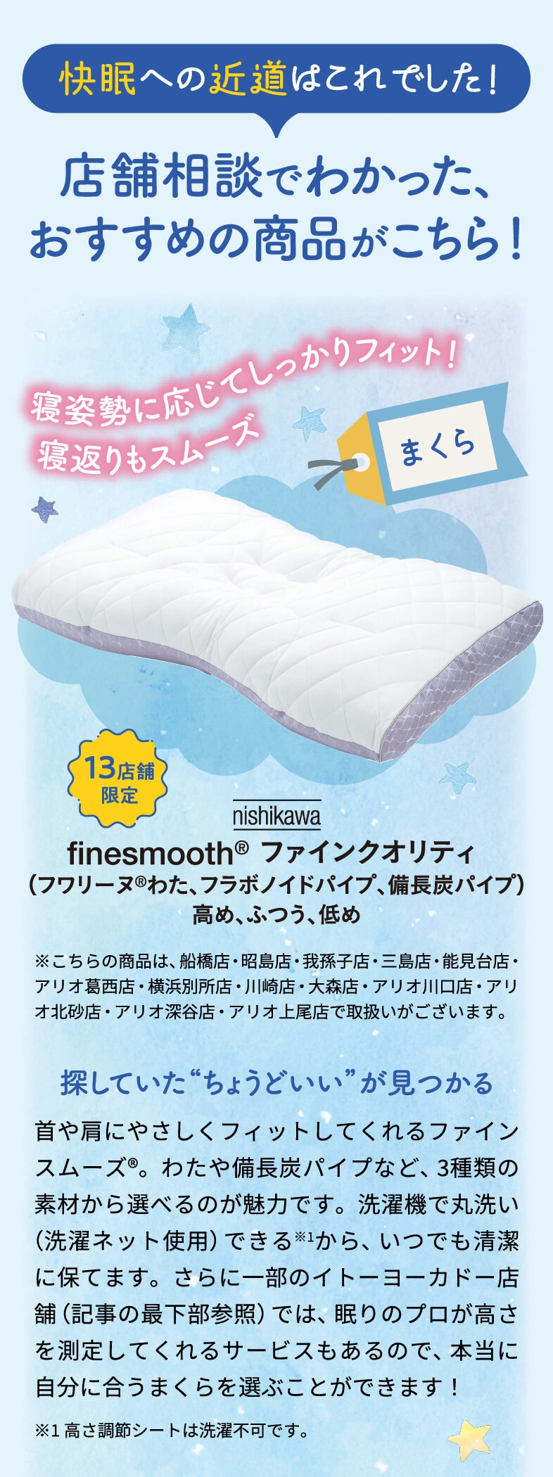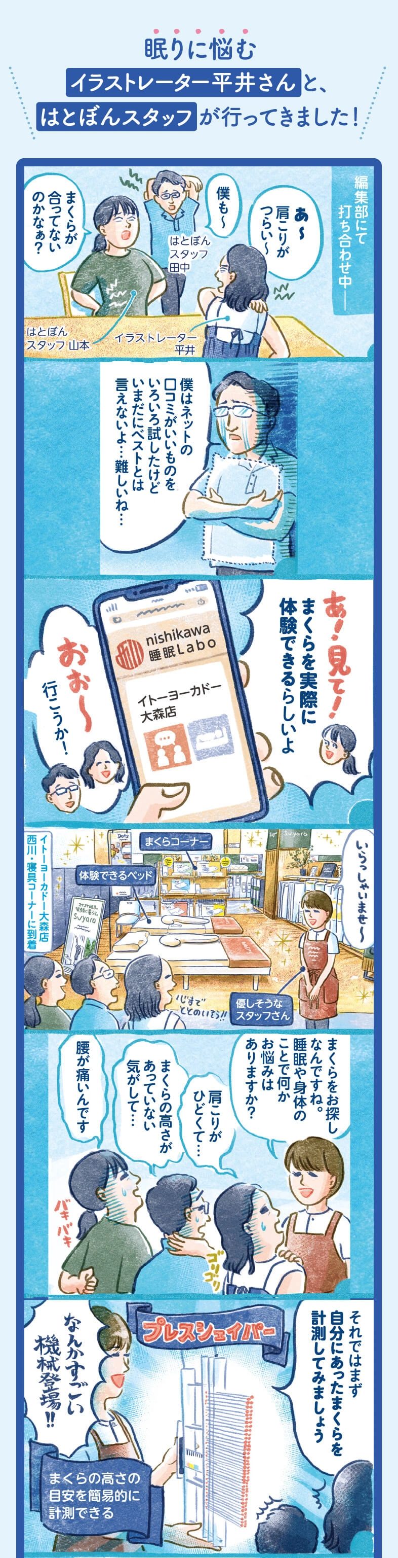 実は、一部のイトーヨーカドー店舗(記事の最下部参照)では、寝具や睡眠のお悩みを直接相談できるんです!今回は、眠りや肩こりに悩む3人が実際に店舗でカウンセリングを受けたときの様子をご紹介します。この機会に、あなたも睡眠の質を見直してみませんか?