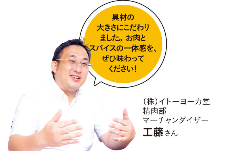「開発のきっかけは、お客様からの『具の小ささ』に対する不満の声でした。そこで、誰もが驚くような肉の塊が入ったカレーを作ろうと考えたんです」