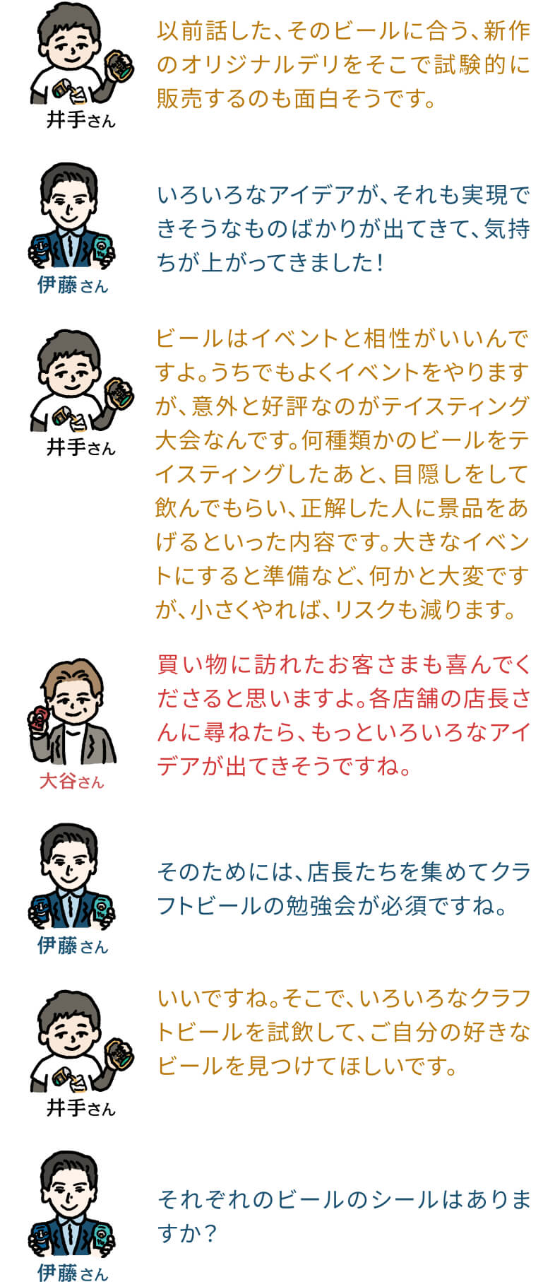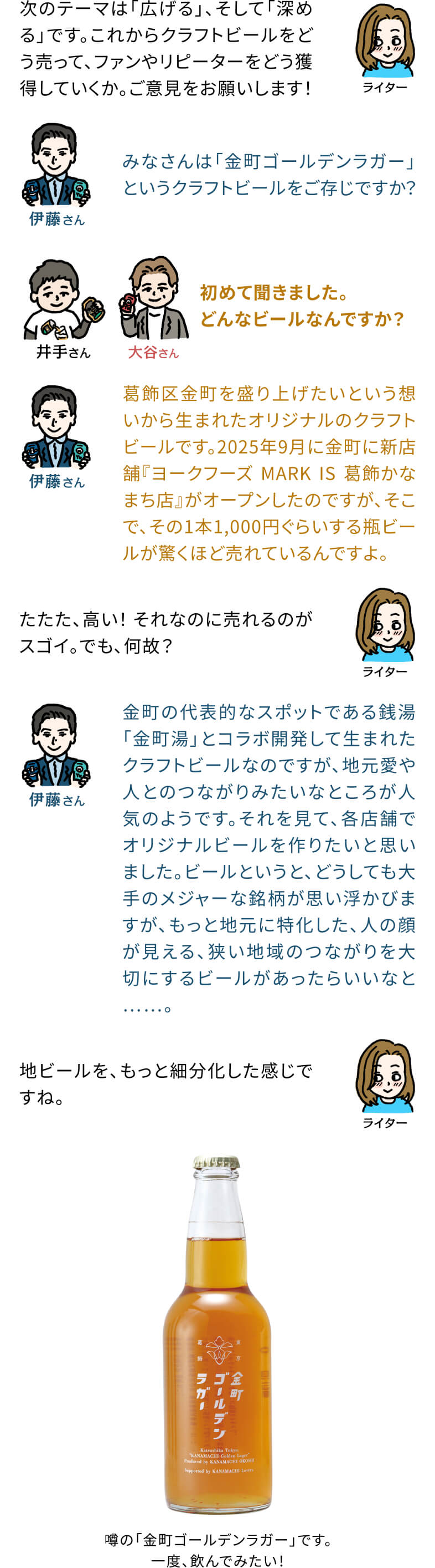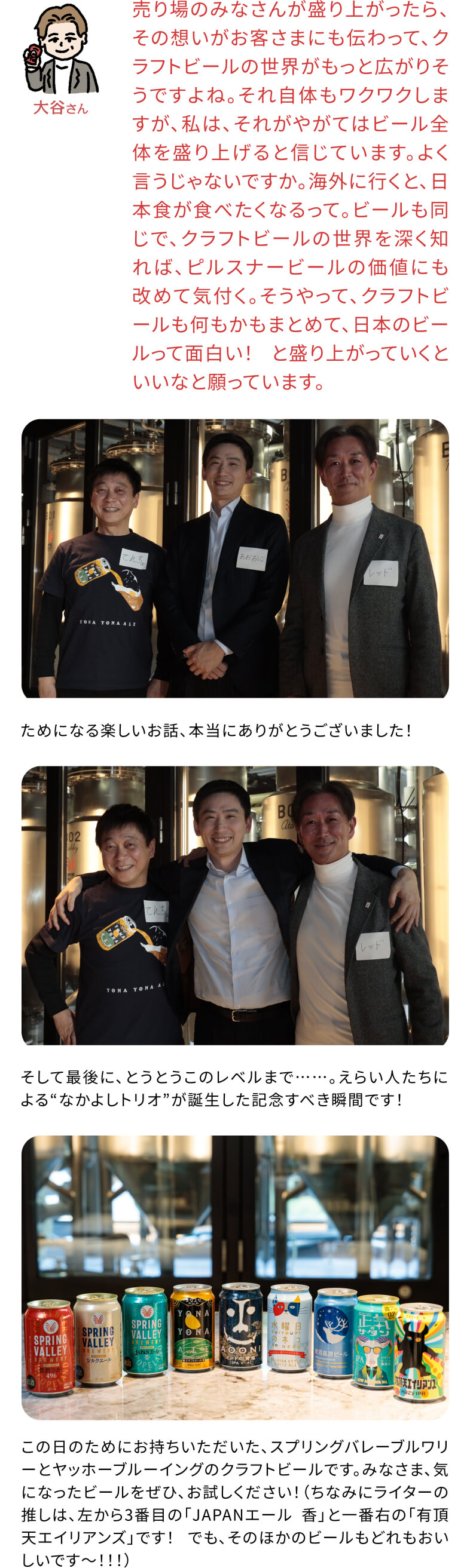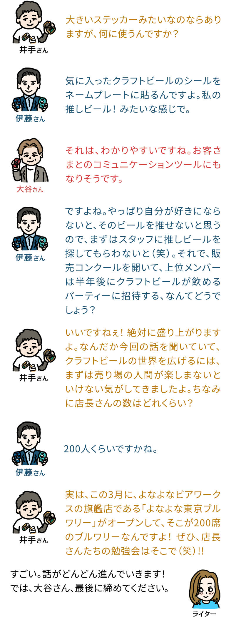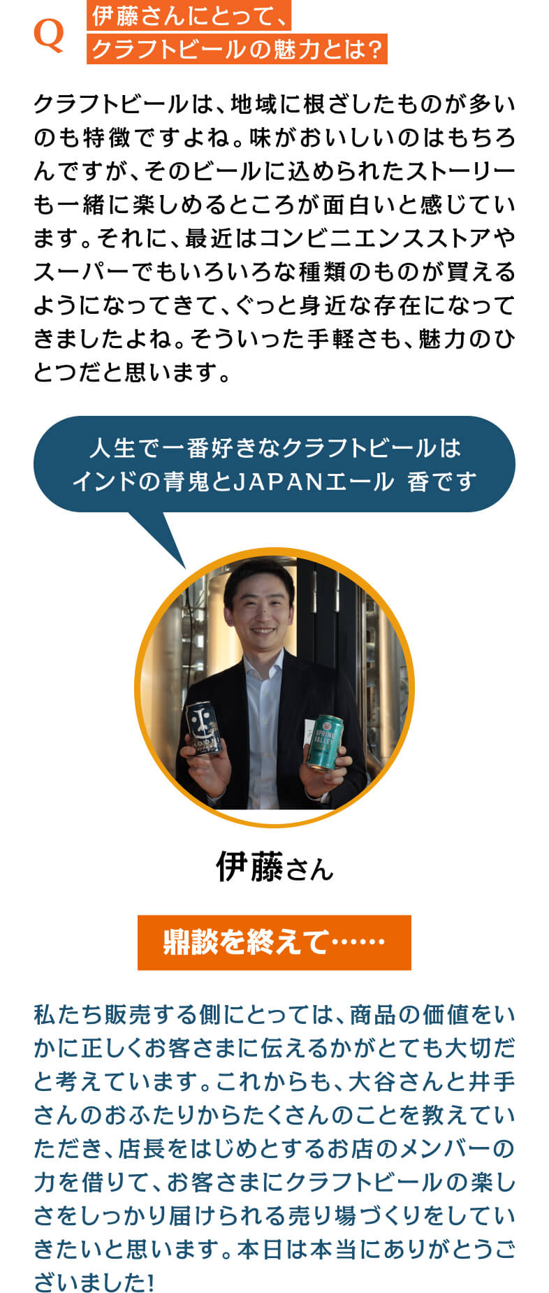 みなさん、こんにちは。私は、お酒は大好きだけど、ビールはまったく初心者のライターです。これまでクラフトビールの基本や楽しみ方、作り方などを少しずつ学んできましたが、今回はなんと、業界の“えらい人たち”にお話を伺えるビッグチャンスが到来! お集まりいただいたのは、キリンビール、ヤッホーブルーイング、そしてイトーヨーカ堂のえらい人というそうそうたるメンバーです。正直、緊張で心臓がバクバク……。でも、こんな機会はめったにない! 思い切ってクラフトビールについて気になっていたあれこれを、ストレートにぶつけてみました。するとみなさん、静かな熱量をもって、でも、初心者の私にもわかるようやさしく語ってくださって感激! クラフトビールのそもそもの役割から、どう広げていくか、新たな魅力の提案、そして3人が想う夢の話まで――。ちょっと特別、かつクラフトビールがこれまで以上にぐっと身近に感じられる、ステキなお話がたっぷり聞けました。“えらい人たち”が語るクラフトビールのこれから、ぜひ最後までお楽しみください!