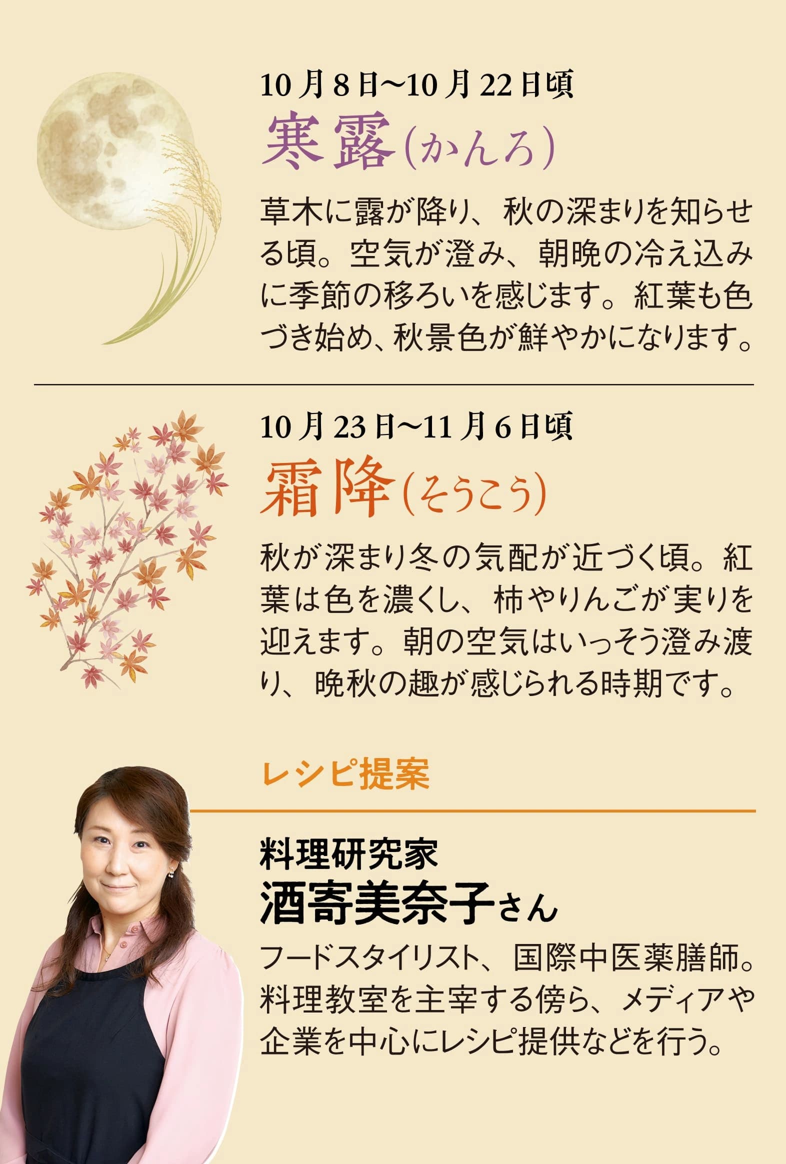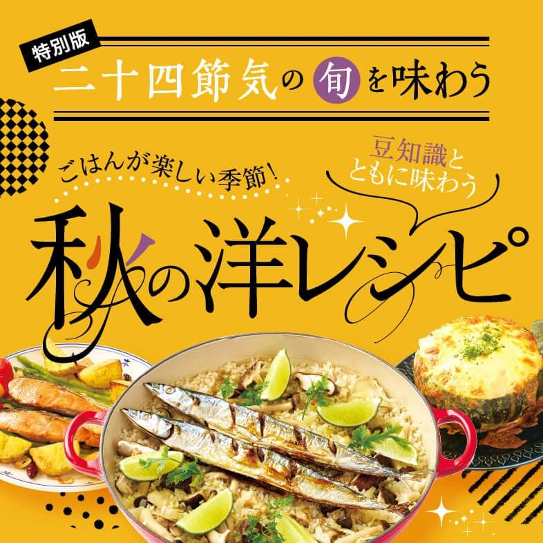 二十四節気とは、春夏秋冬を24に分け、それぞれの四季を表す名前をつけたもの。旬の食材を使ったオリジナルレシピを紹介する人気連載を季節ならではの特別版に拡大し、秋の洋風レシピをお届け。旬真っ盛りの味わいを心ゆくまで堪能しましょう。