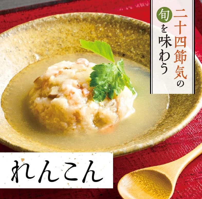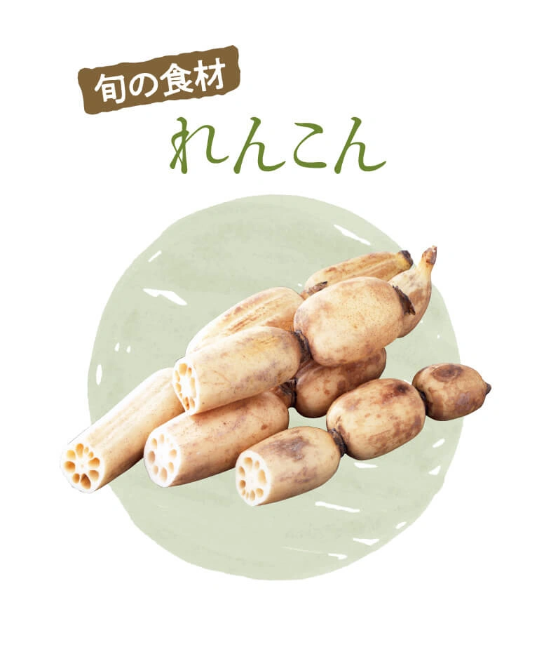 二十四節気とは春夏秋冬を24に分け、それぞれの季節を表す名前をつけたもの。旬の食材の料理を味わい、季節の移ろいを感じてみてはいかがでしょう。今回の食材は『れんこん』です。