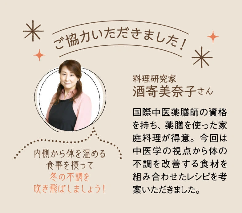 乾燥して気温がぐっと下がるこの時期。そんな季節を元気に乗り切るために食材からもらいましょう。生姜や鶏肉などを使った心も体も温まるレシピを、国際中医薬膳師の酒寄さんに聞きました!