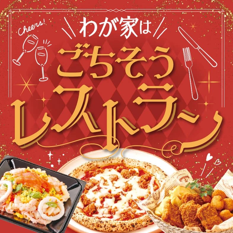 忙しい中でもわくわくする年末は、気の合う仲間を誘って、おうちでホームパーティーはいかがでしょうか。イトーヨーカドーで人気のピザやお惣菜、そしてケーキまでそろえば、楽しいお食事会のはじまりです。