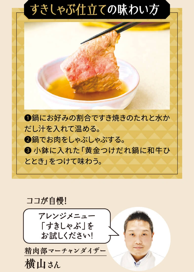 いつものすき焼きに、少しアレンジを加えてみたい。そんなときは“すきしゃぶ”をお試しあれ。すき焼きの甘さとさっぱりしたつけだれのコラボは想像を超えたおいしさです。