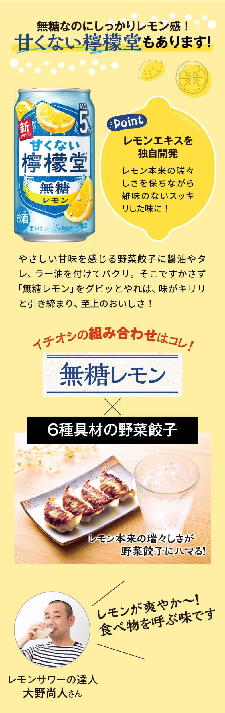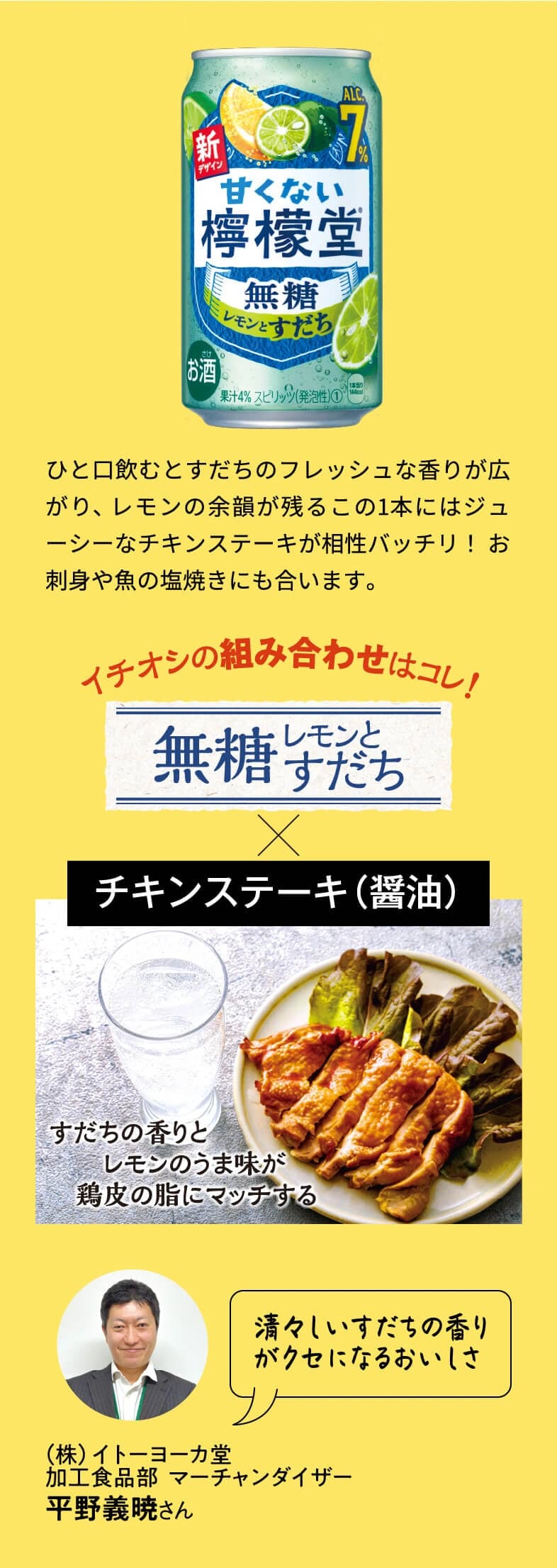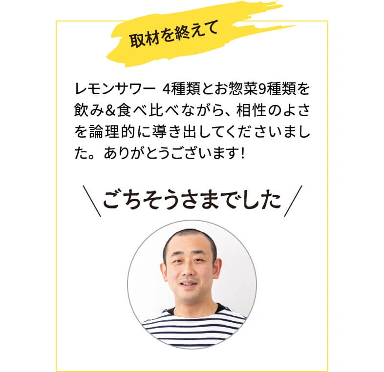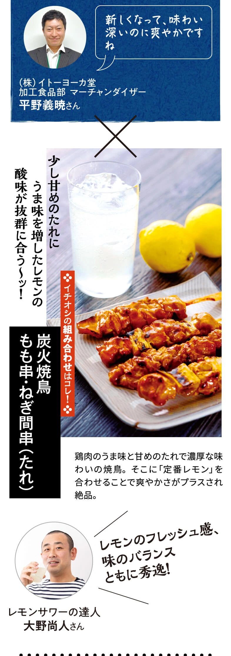 全国開店から5年。『檸檬堂』がさらにおいしく進化しました。レモンサワーを知り尽くした達人・大野尚人さんが選ぶ新・二代目檸檬堂と相性抜群のお惣菜とともにご紹介します!(株)イトーヨーカ堂の加工食品部マーチャンダイザーの平野さんのコメントも参考にしてください。