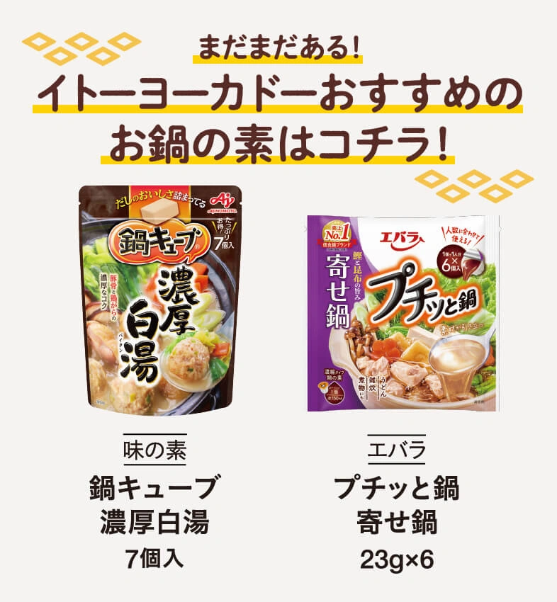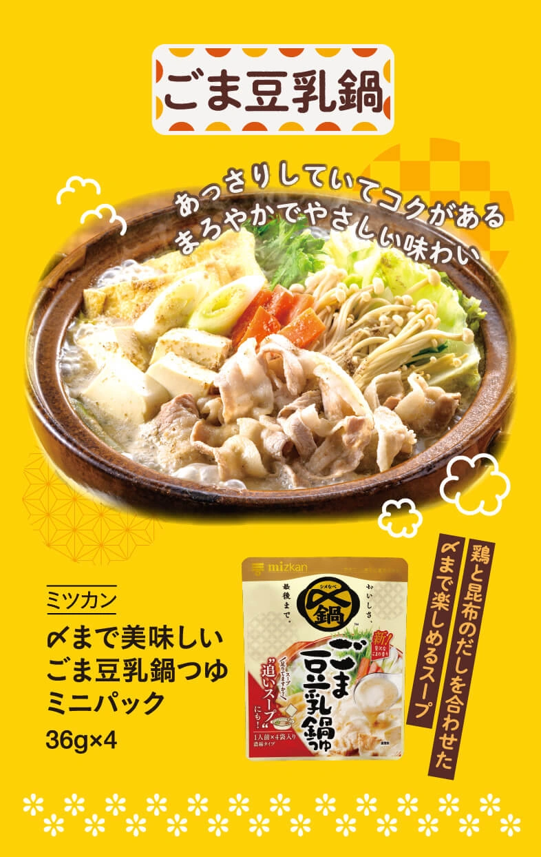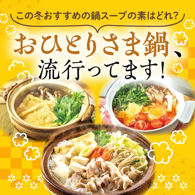 イチオシのおひとりさま用鍋スープの素と、それに合う具材をご紹介! ひとり暮らしはもちろん、お子さまの夜食などにもぴったり。