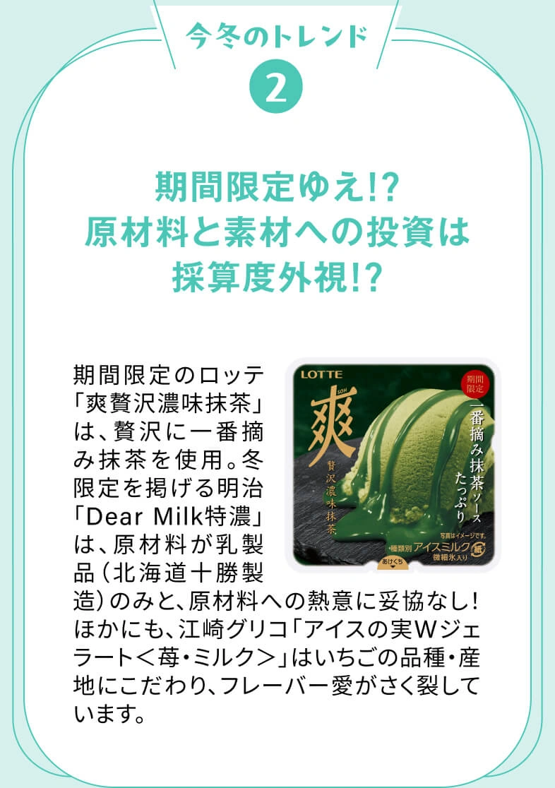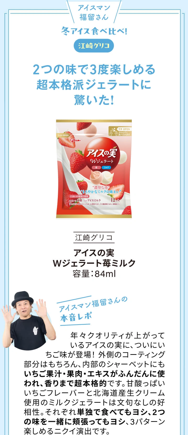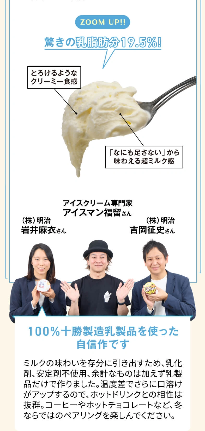取材協力/アイスクリーム専門家 アイスマン福留さん・江崎グリコ株式会社 健康イノベーション事業本部 増田秀人さん・株式会社明治 グローバルフードソリューション事業本部 吉岡征史さん・株式会社明治 同本部 岩井麻衣さん・赤城乳業株式会社 開発マーケティング本部 最上日菜乃さん・株式会社ロッテ マーケティング本部 北村考志さん・森永乳業株式会社 営業本部 柏倉翔さん