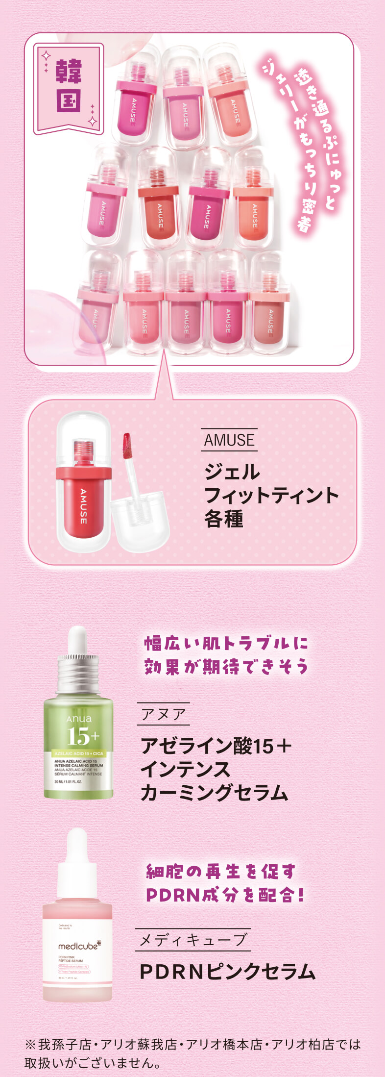 アリオ深谷店・アリオ鷲宮店・アリオ上尾店・アリオ市原店・グランツリー武蔵小杉店・アリオ柏店・久喜店・武蔵境店・松戸店・