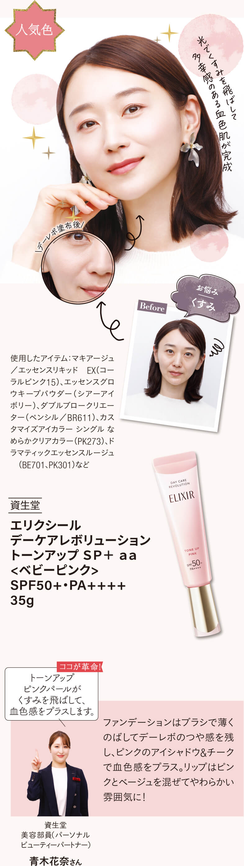 人気色のベビーピンクと新色ピュアベージュ、それぞれを使った