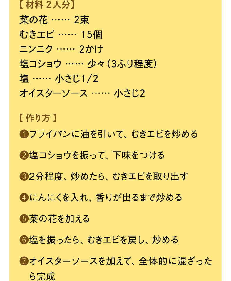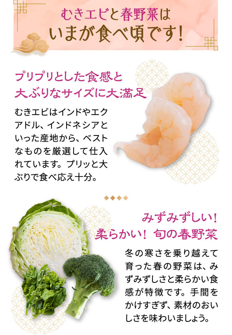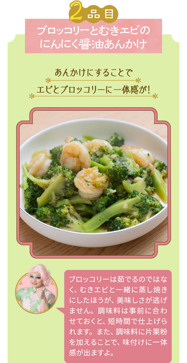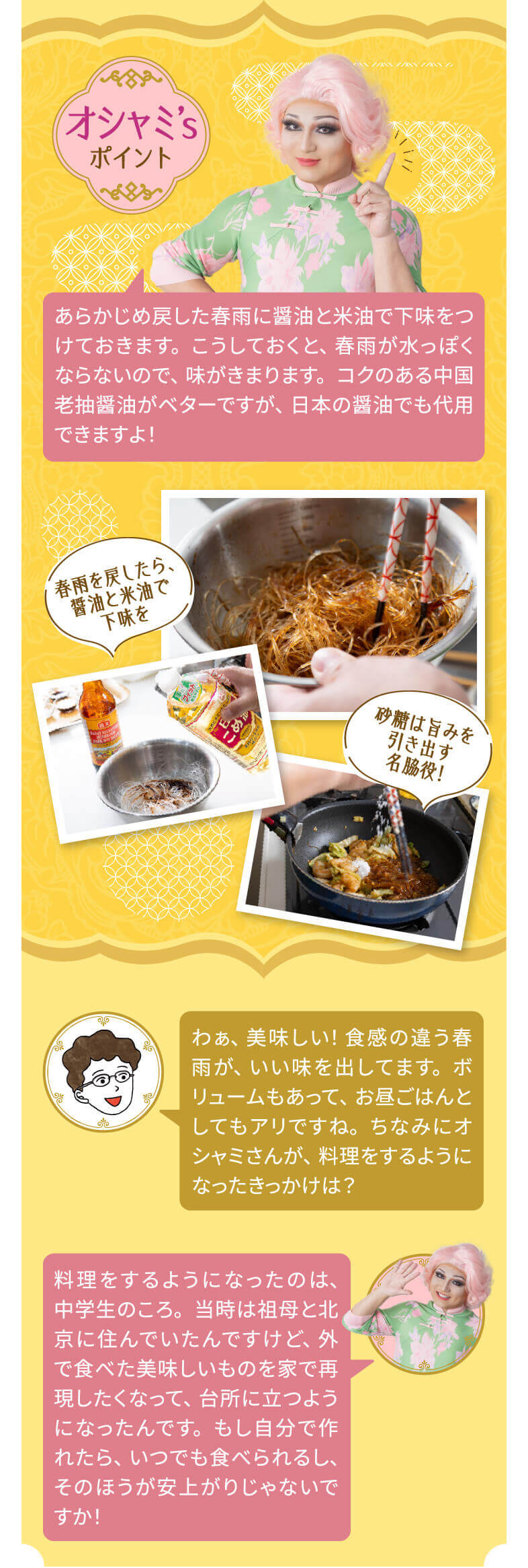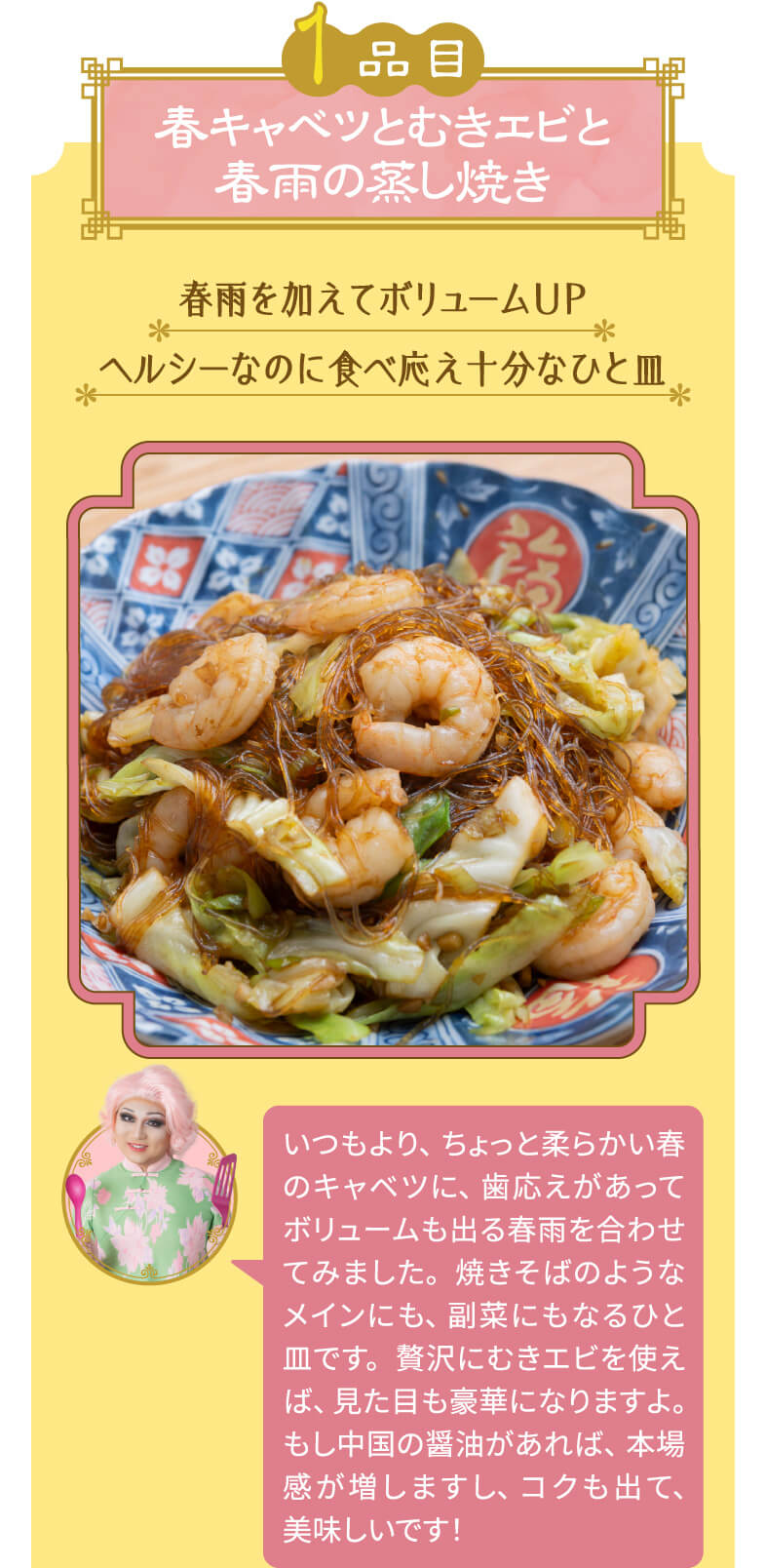 キャベツやブロッコリー、玉ねぎ、そして菜の花など、春は野菜が美味しい季節です。そして、どんな料理にも合わせやすい万能食材の代表格といえば、むきエビ! 今回、そんな食材を使って、いつもとはひと味違うガチ中華を披露してくれたのが、北京出身で料理上手なドラァグクィーン“ニーハオ♡オシャミ”さんです。手軽なのに、本格的な中華の味を、レパートリーに加えてみては?