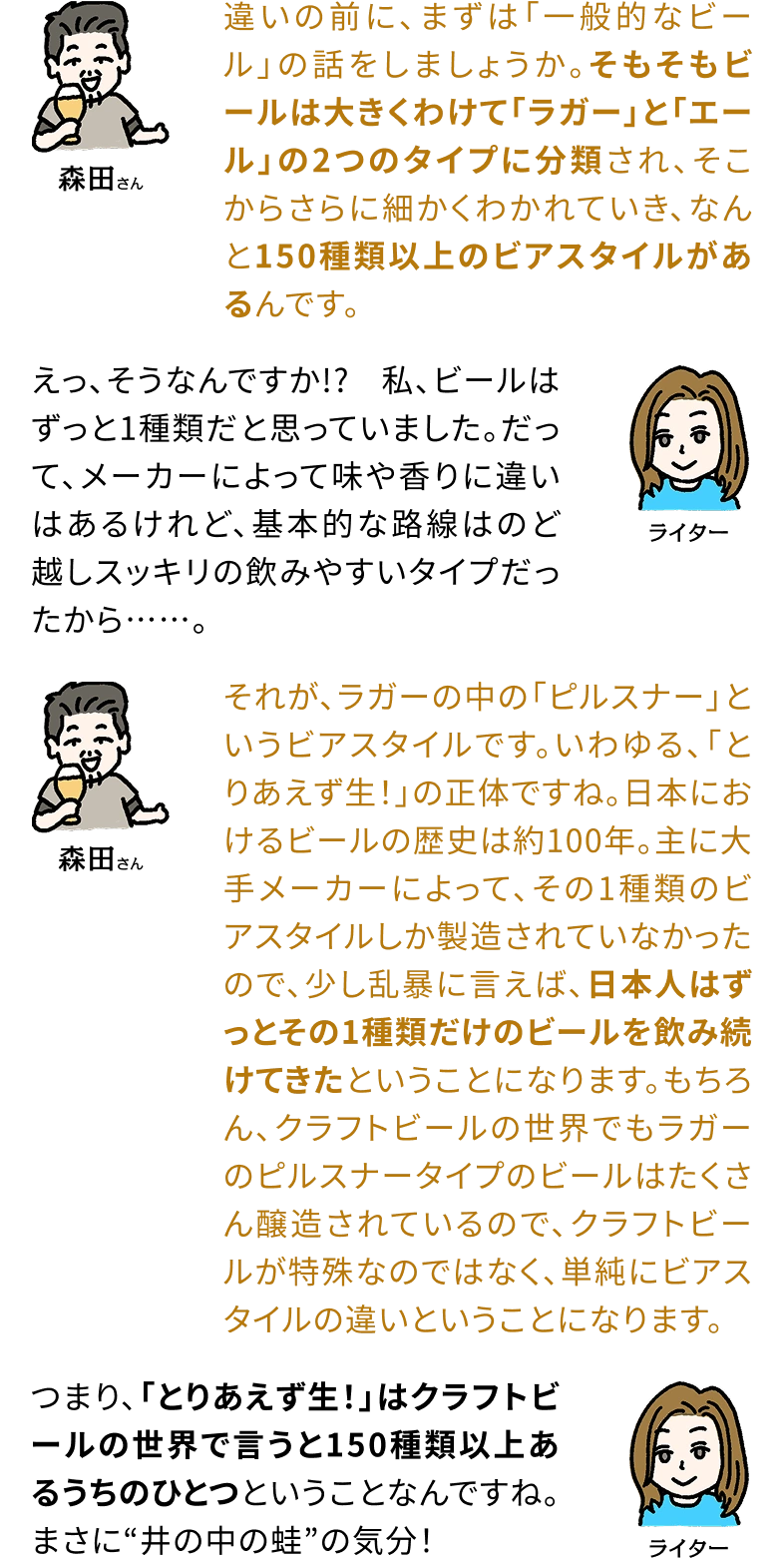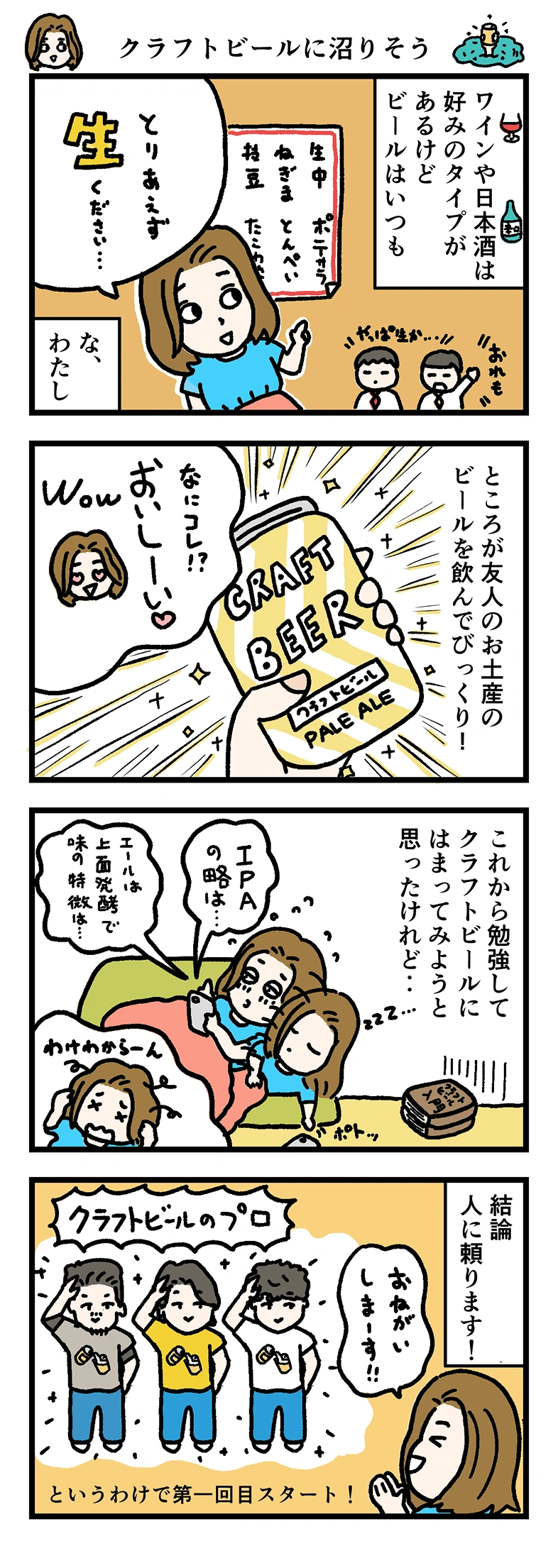 みなさん、こんにちは。私は、お酒は大好きだけどビールはまったく初心者のライターです。先日友人からお土産でもらったおいしいクラフトビールに出合って興味を持ち、もっとあれこれ飲んでみたい! と思ったものの奥深い世界に及び腰……。そこで、キリンビールやよなよなエールの中の人に直接お話を聞いて最短距離でクラフトビールの沼の住人になる連載を始めました! みなさんも、クラフトビールの楽しくておいしい世界にズブズブとのめりこんでいきましょう~っ!