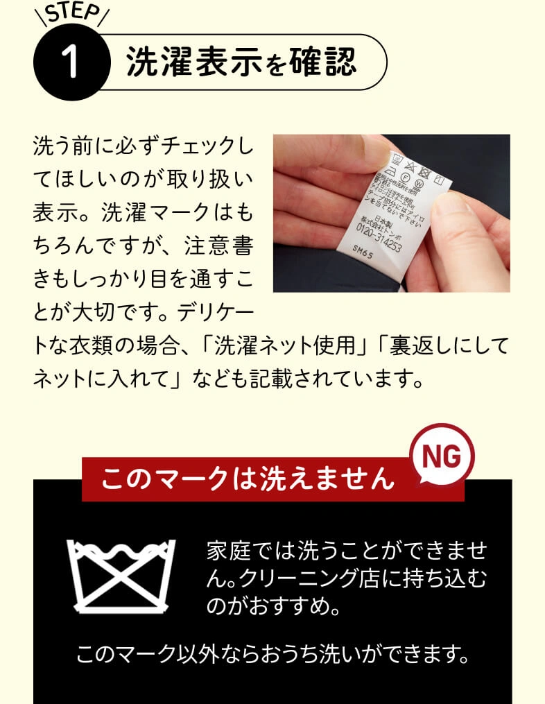 せっかく買ったお洋服、型崩れや色落ちが心配だからと、なんとなくクリーニングに出していませんか? 洗濯表示を確認してみると、実はおうちで洗えるものがかなりの割合であるのです。 自宅で洗えるアイテムや、おうち洗いのポイントを知れば、お財布にも衣類にもやさしいケアが叶います。