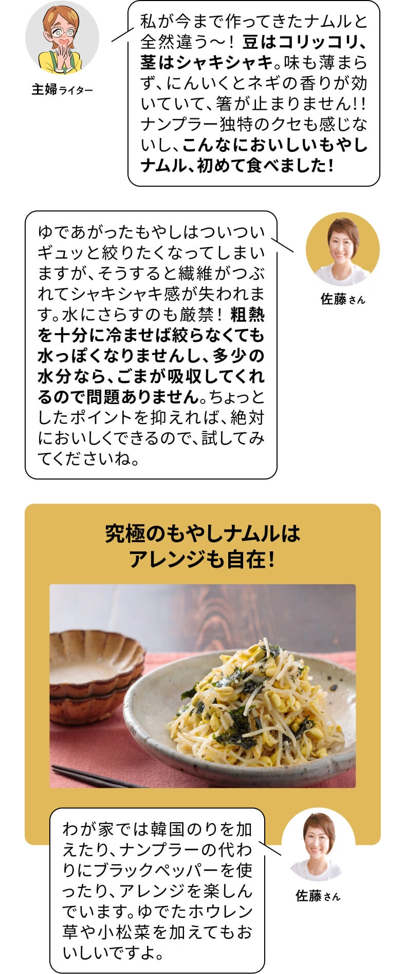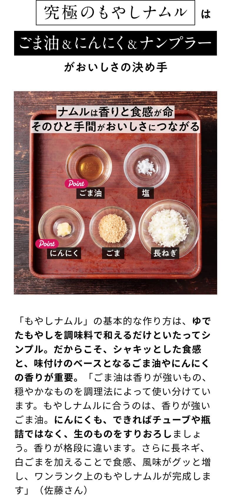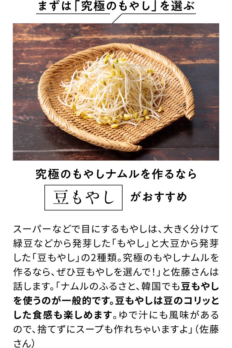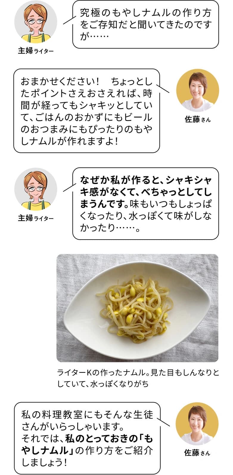 何かと物価が上がっている今、1袋60円前後で買える豆もやしは、私・ライターKだけでなく、皆さまにとっても冷蔵庫に欠かせない存在ではないでしょうか。私はいつも何気なくナムルにして食べているけれど、まぁ、可もなく不可もなくといったところ。そんなとき、豆もやしの概念が変わる“究極のもやしナムル”レシピが存在するらしいと小耳にはさみ、「私も作ってみたい!」とネットでレシピを検索しては試すも、あまり違いは感じられず……。結局、自力ではどうにもならず、プロに助けを求めることにしたのです。