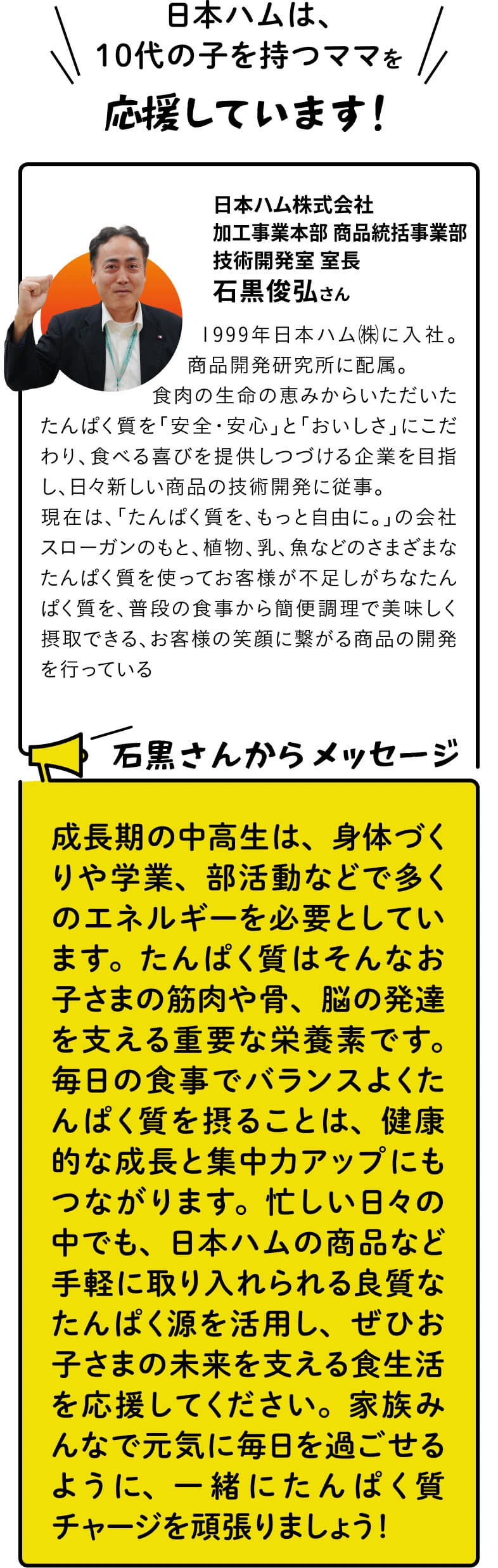 最近、年代・性別を問わず注目が高まっているたんぱく質。コンビニやスーパーでも「たんぱく質が摂れる!」とうたう商品を見かける機会が増えています。ところで、なぜたんぱく質を摂った方がいいの? どう摂ればいいの? そんな疑問に答えるべく、日本ハムさんに、たんぱく質の重要性と手軽な取り入れ方を聞いていきます!