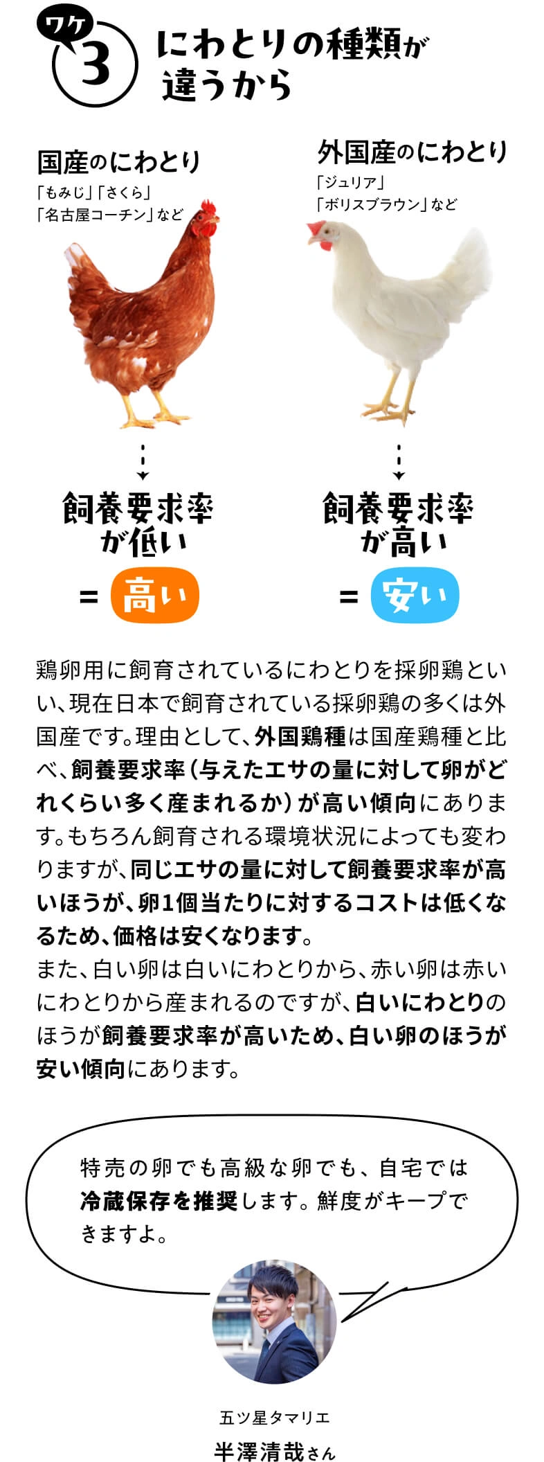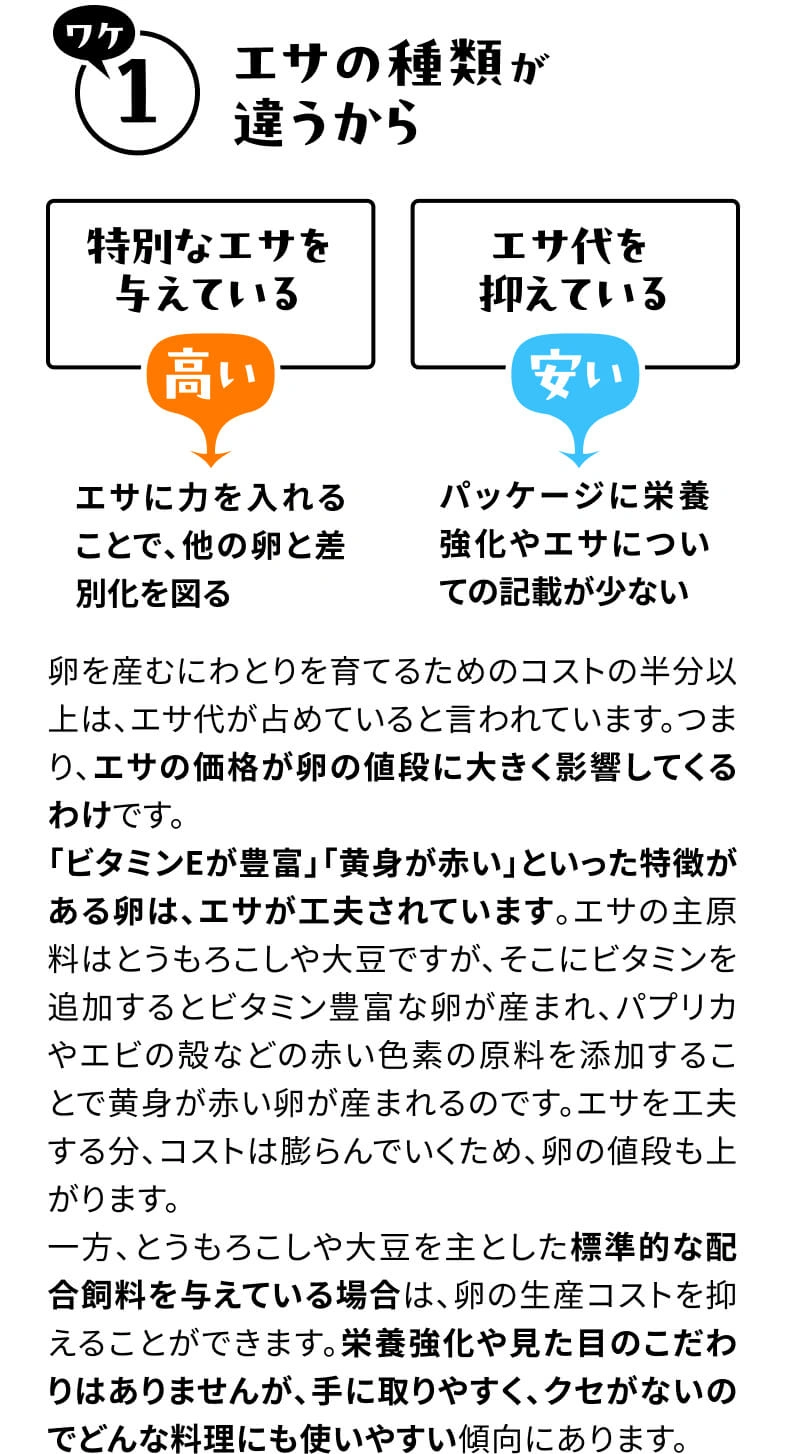 スーパーマーケットでいつも手に取る定番アイテム。その隣に並ぶちょっとお高いアイテムを見ると、「高ければ高いほどおいしいの?」「安いものは何が違うの?」というギモンが湧きますよね。でも、価格の理由をきちんと知れば「私はコレ!」と自信を持って選べるハズ。今回は、最強の完全栄養食とも言われ、食卓に欠かせない卵のおいしさの違いに迫ります!
