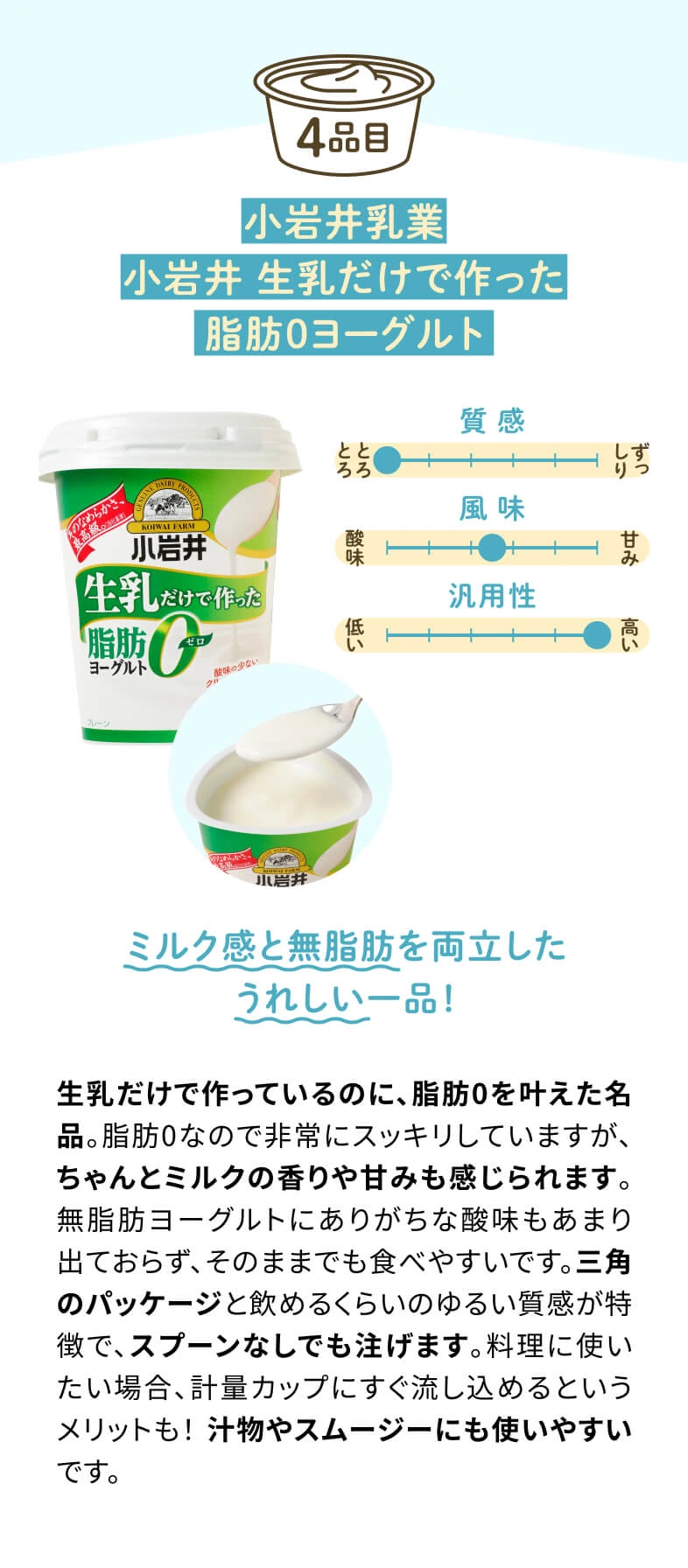 スーパーに並んでいるヨーグルトは、味や食感、機能性など商品によって特徴が違います。せっかく食べるなら、好みに合ったヨーグルトを食べたいですよね。そこで今回は、自分に合ったヨーグルトの選び方をはじめ、人気のヨーグルト9商品の実食レビュー、おすすめの食べ方、料理に使うときなどのコツなどをヨーグルトマニアの向井智香さんと一緒にお届けします!