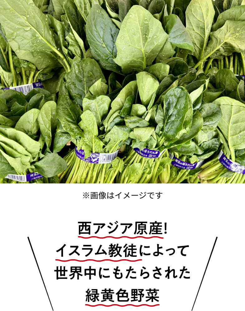 原産地は西アジア(イラン・ペルシャ付近)とされ、植物学的にはヒユ科ホウレンソウ属に分類される緑黄色野菜です。