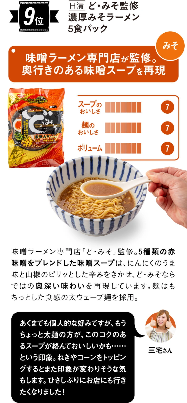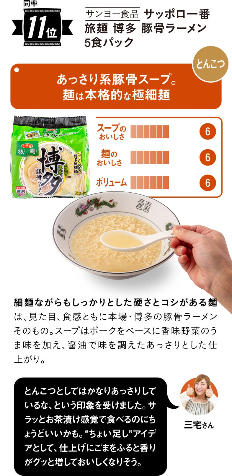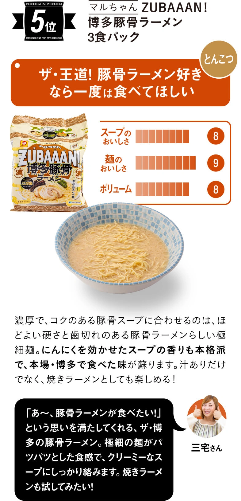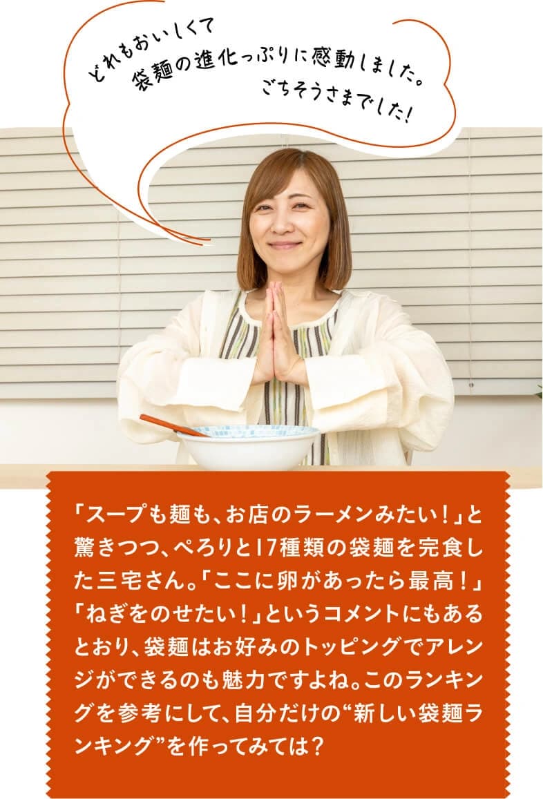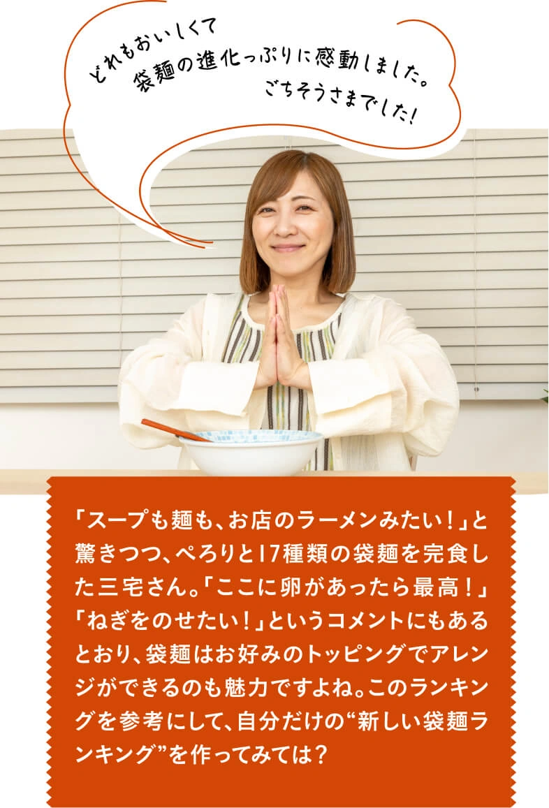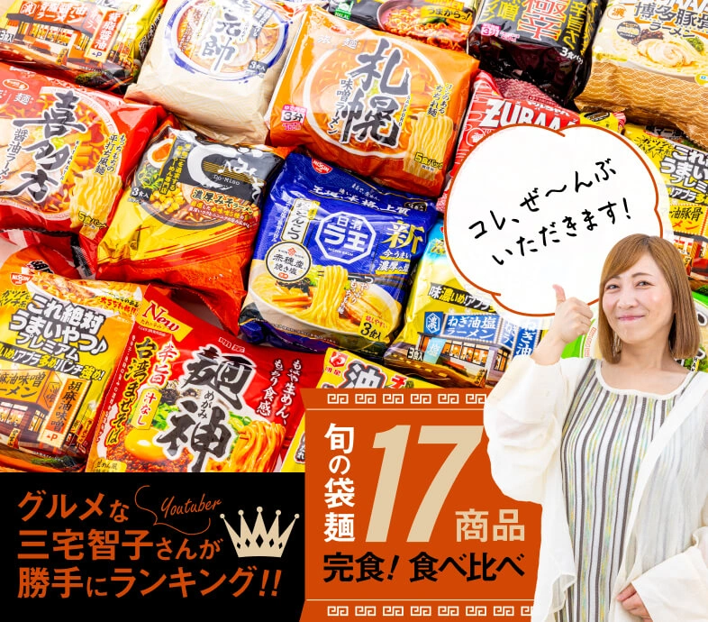 年々、進化を遂げているインスタントラーメン。特にここ数年、各メーカーからスープや麺のおいしさにこだわった、お店レベルの本格派が続々と登場しています。そこで今回は、はとぼん編集部が2024年8月~2025年3月までに発売された17種類を厳選! SNS総フォロワー数52.4万人(2025年10月時点)でグルメなYouTuber三宅智子さんにぜ~んぶ食べ比べてもらい、「スープのおいしさ」、「麺のおいしさ」、「ボリューム」の3つのポイントで食べ比べてもらいました!